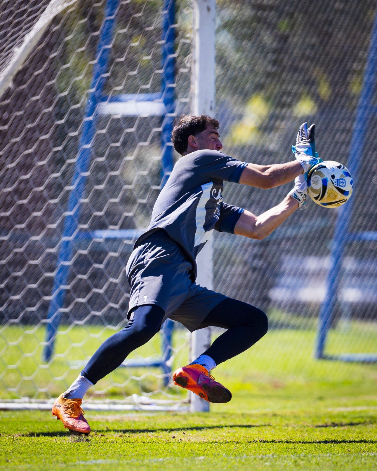 Tomi Marchiori en una de las atajadas de la mañana. (Foto: Hernán Mauricio)